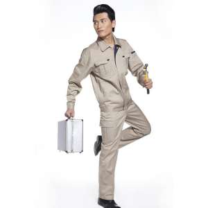 純棉米黃色工作服滌棉電焊工作服加厚防靜電